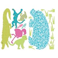 RoomMates Animal Silhouettes (Colors) Peel & Stick Giant AppliquésJungle animals have never looked so sophisticated as these patterned silhouettes in vibrant colorways. Each set comes with an ultra large Giraffe, a friendly croc, one hip hippo, mischievous monkeys, a trendy flamingo, a loving turtle, a couple of toucans, birds and some fresh blades of green grass! Unleash the interior designer in you! The wall stickers install in seconds. Just peel and stick. When you are done with your project, send us a picture! Really!