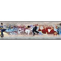 Brewster 143B75044 Kidding Around Skateboard Graffiti Wall Border, 9-Inch by 180-Inch, Gray Review