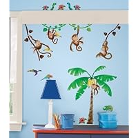 These cute monkeys are the perfect addition to a jungle-themed bedroom or kid's play area! Application is easy: just peel each pre-cut sticker from the liner, then smooth it on the wall. But our decals aren't only for walls! Try using them on doors, furniture, mirrors, windows, or any other smooth, flat surface. You'll love the fun and character they bring to any room!41 pieces range from 1.75" x 1.5" to 10.5" x 4.75"Want to learn more information about RoomMates RMK1676SCS Morrow Monkeys Peel and Stick Wall Decals?